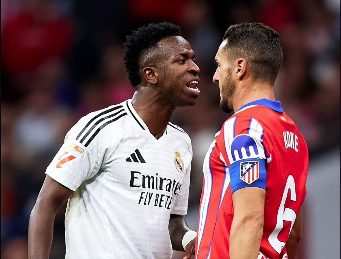 不过,费兰·托雷斯并不是第一个用“离间计”挑拨维尼修斯的球员。在9月的西甲马德里德比中,皇马2-5不敌马竞时,马竞队长科克也曾采用过相同的手段。